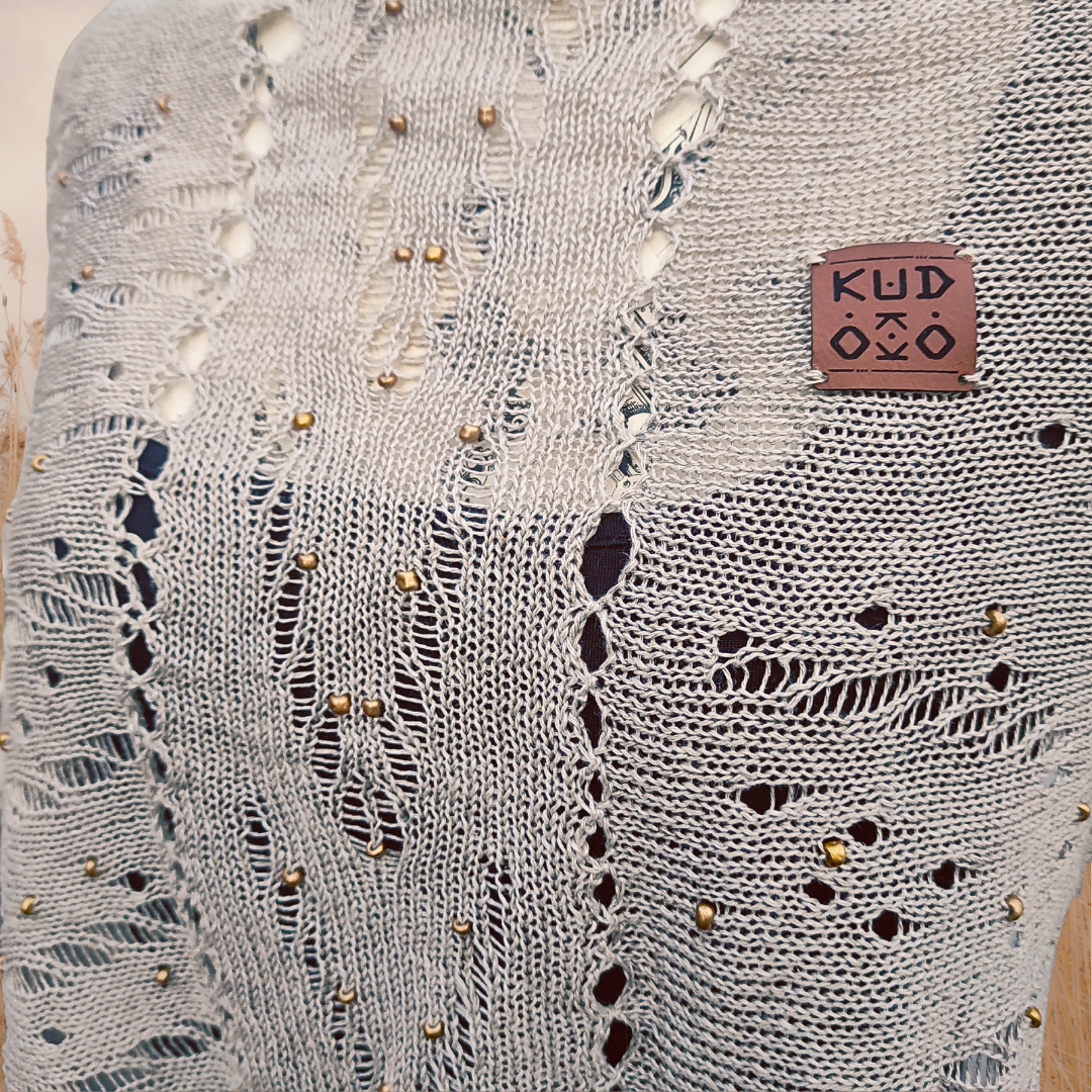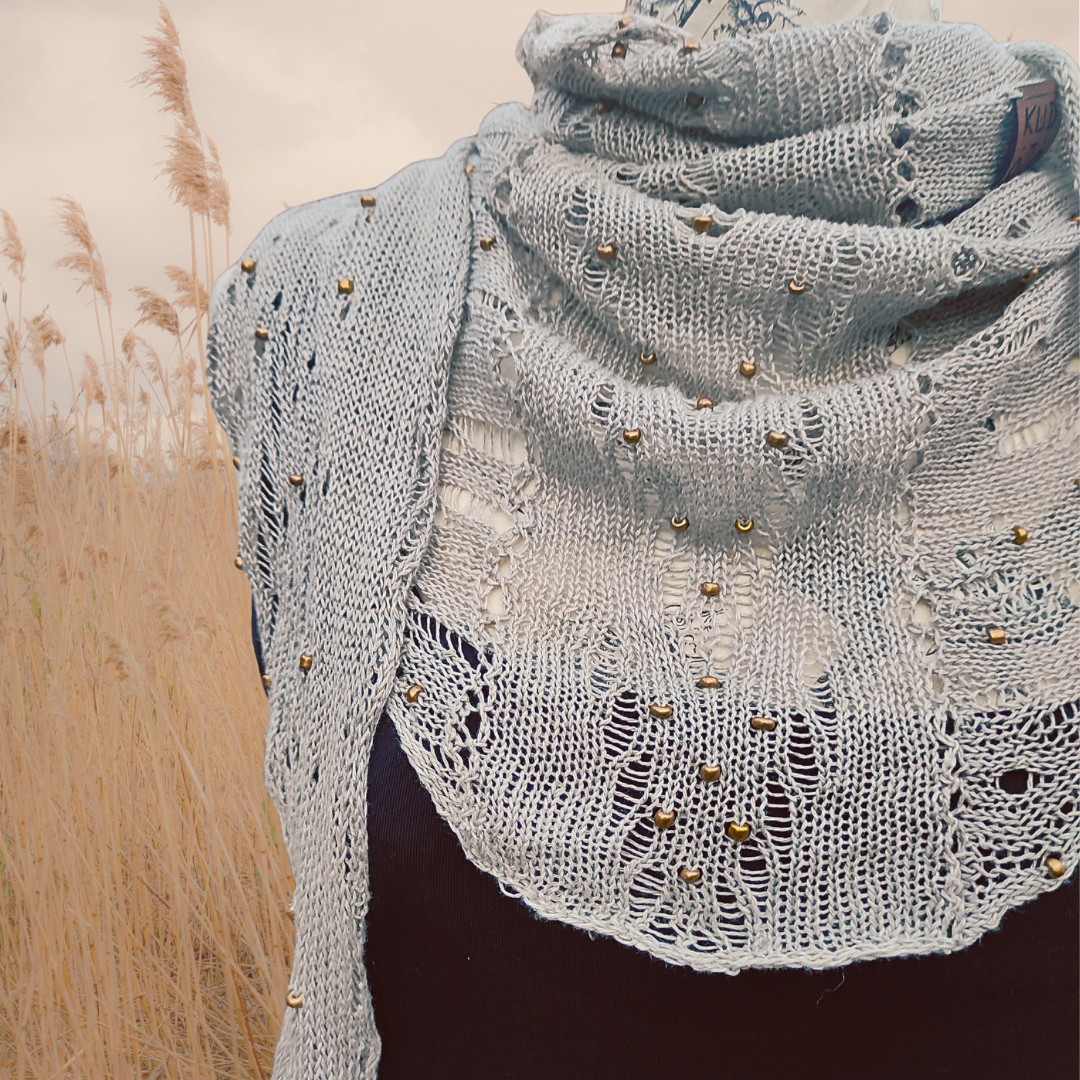 Helmin koristeltu uniikkikappale. Helmet lisätään neuloessa, joten ne eivät voi pudota. Suosittelen tälle huivia varovaista käsinpesua.