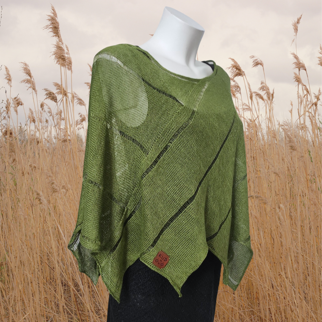 Venus Poncho on ihana, boheemi, tyylikäs, erityisesti meille lyhyemmille veenuksille suunniteltu pellavaneuleponcho. Venuksen rakenne on lähes saumaton, mikä tekee siitä supermiellyttävän käyttää. Voit joko korostaa ponchon särmikkyyttä tai häivyttää sitä vaihtamalla ponchon asentoa.