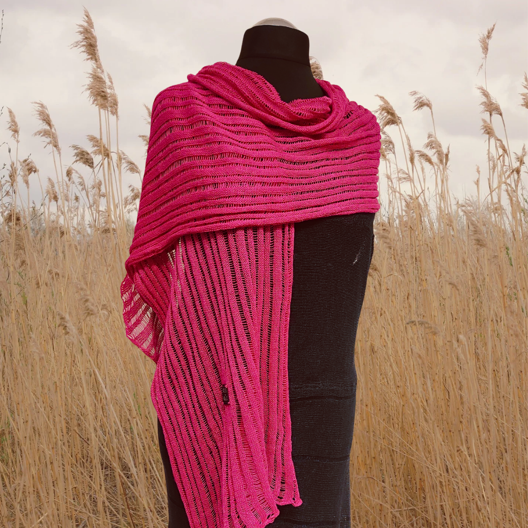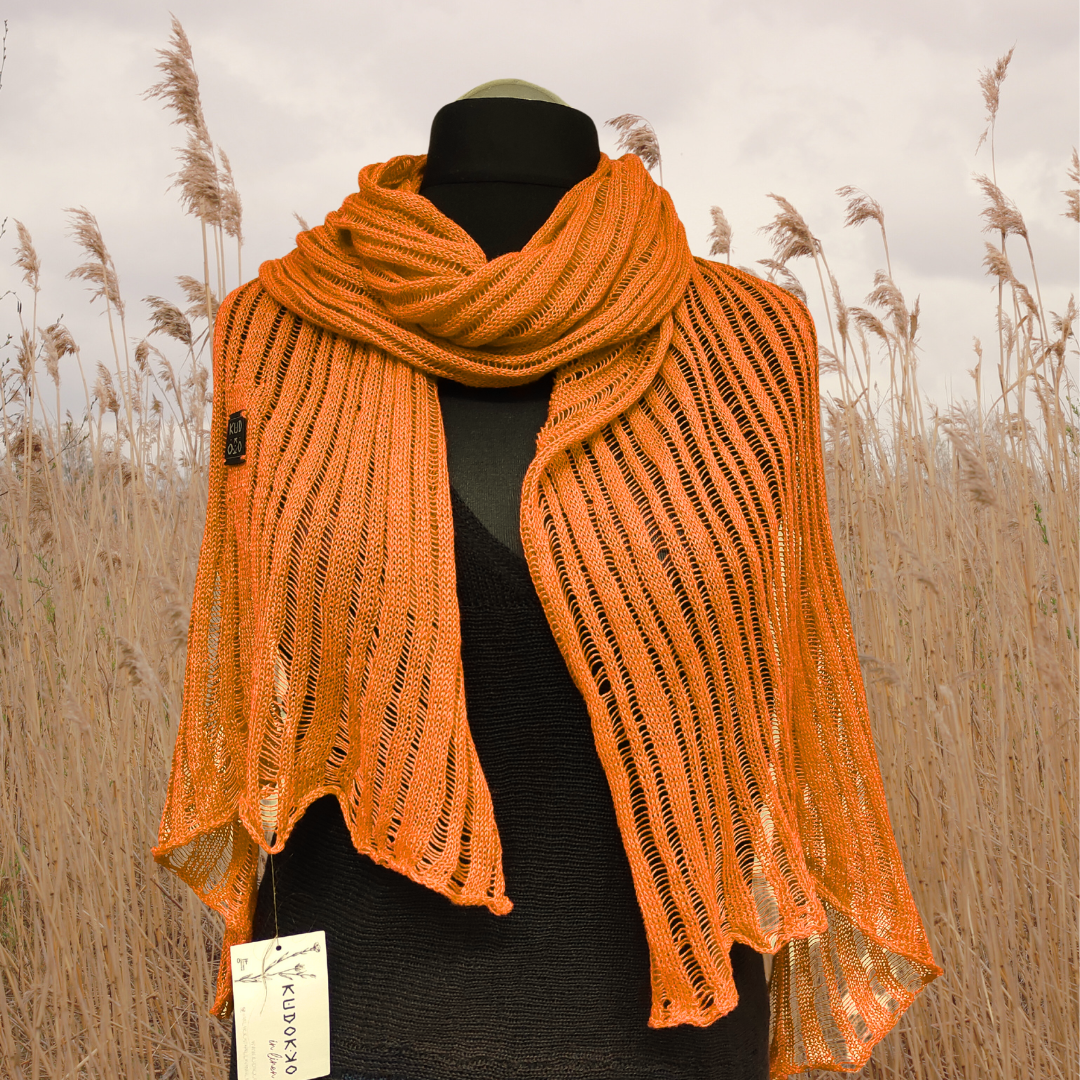Pinja huivi on tyylikäs ja rento pellavaneulehuivi jota voit käyttää niin kaulahuivina, hartiahuivin kuin turbaanina. Eläväinen ribbipinta laskostuu kauniisti ja viistotetut päät luovat elegantin ilmeen. Jokainen huivi neulotaan yksitellen zero-waste tekniikalla Kudokkon työhuoneella.